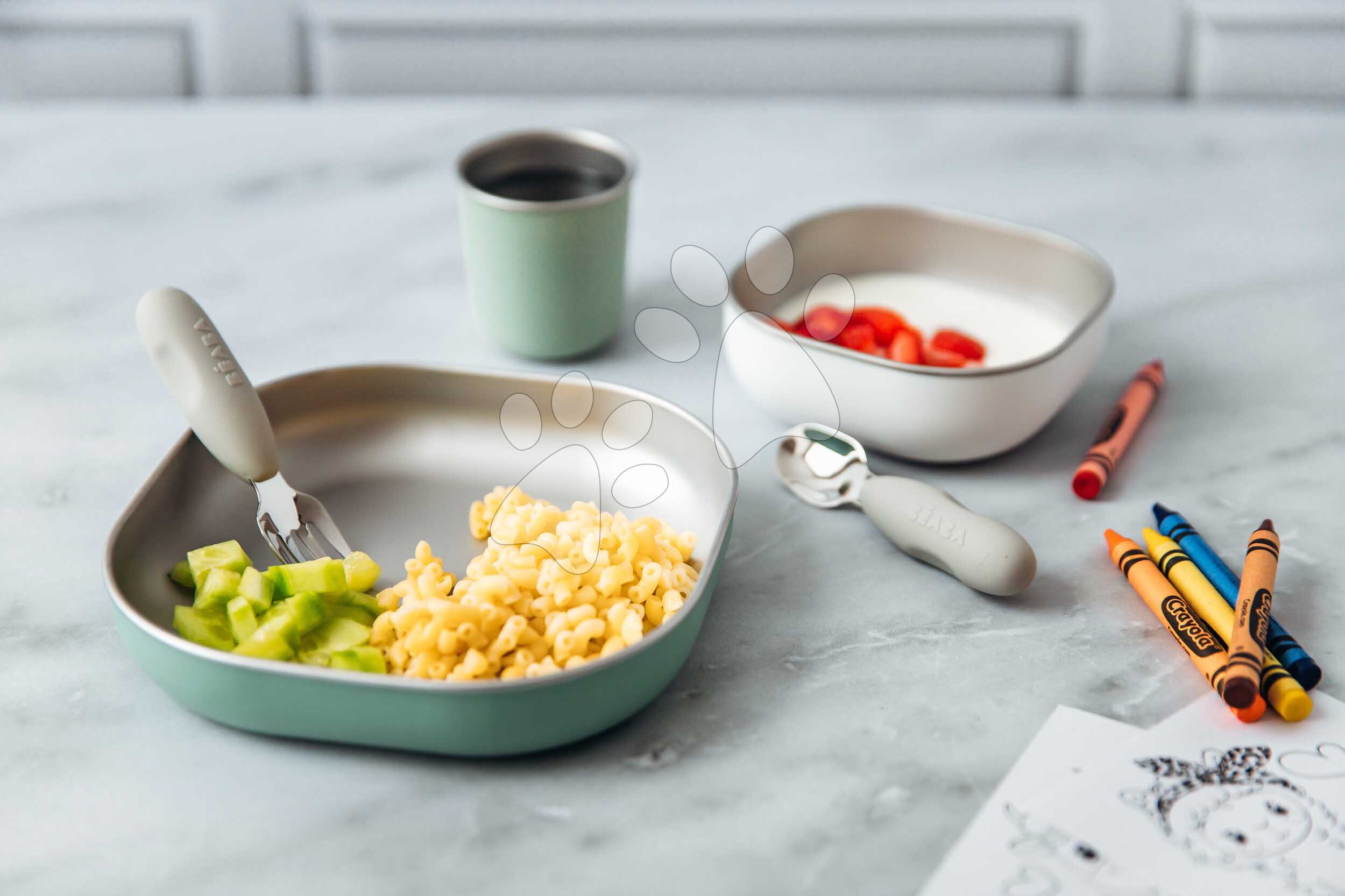 Jedálenská súprava Stainless Steel Meal Set Sage Green z dielne prestížnej francúzskej značky Beaba predstavuje všetko, čo k prvému skutočnému jedlu detičky a rodičia potrebujú. Trojdielna jedálenská súprava v odtieňoch zelenej a sivej z nehrdzavejúcej ocele pozostáva z hlbokého taniera, misky a pohára. Táto jedálenská súprava Beaba je špeciálne navrhnutá pre potreby detičiek, ktoré začínajú samostatne jesť a je vhodná pre bábätká už od 4 mesiacov.