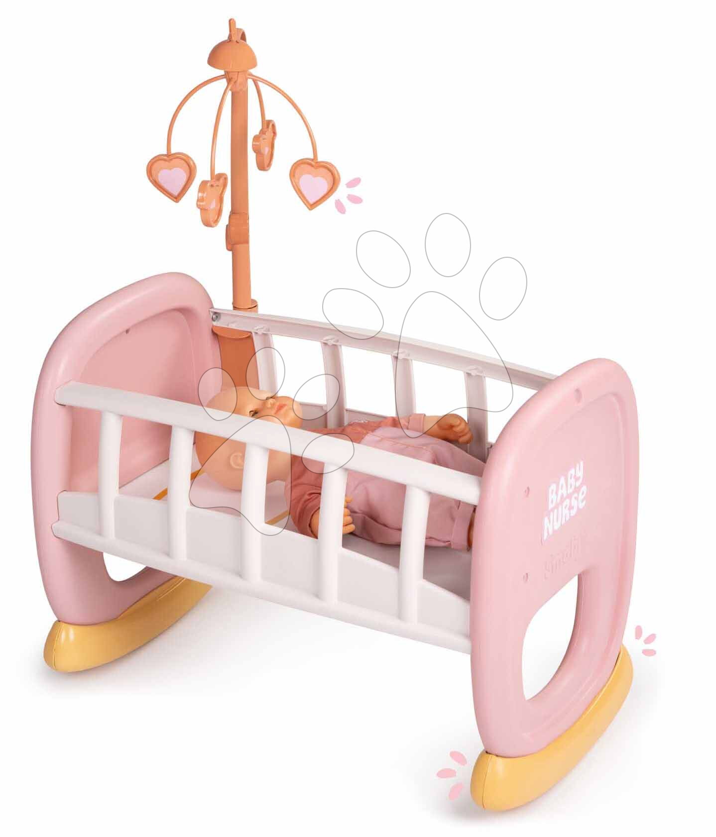 Kolíska s kolotočom Baby´s Cot Soft z populárnej kolekcie Baby Nurse od francúzskeho výrobcu Smoby je nádherná kolíska a zároveň postieľka pre bábiku s maximálnou veľkosťou 42 cm. Jemné vyhotovenie kolísky v ružovom vyhotovení s francúzskym dizajnom očarí malé mamičky na prvý pohľad. Jej súčasťou je aj kolotoč, umiestnený nad hlavičkou bábiky, ktorý pomôže s jej uspávaním. Dievčatká v tejto nádhernej postieľke môžu bábiku hojdať, uspávať a zažijú s ňou veľa radostných chvíľ.