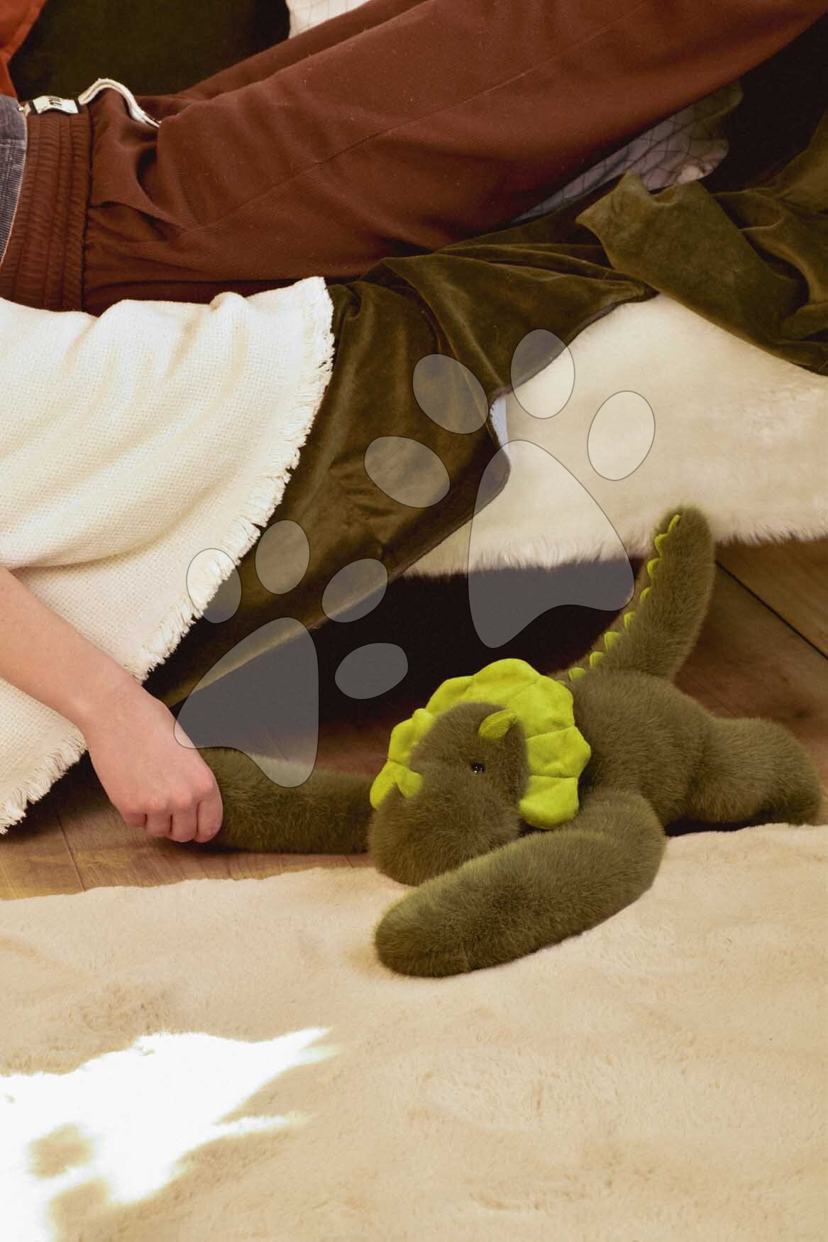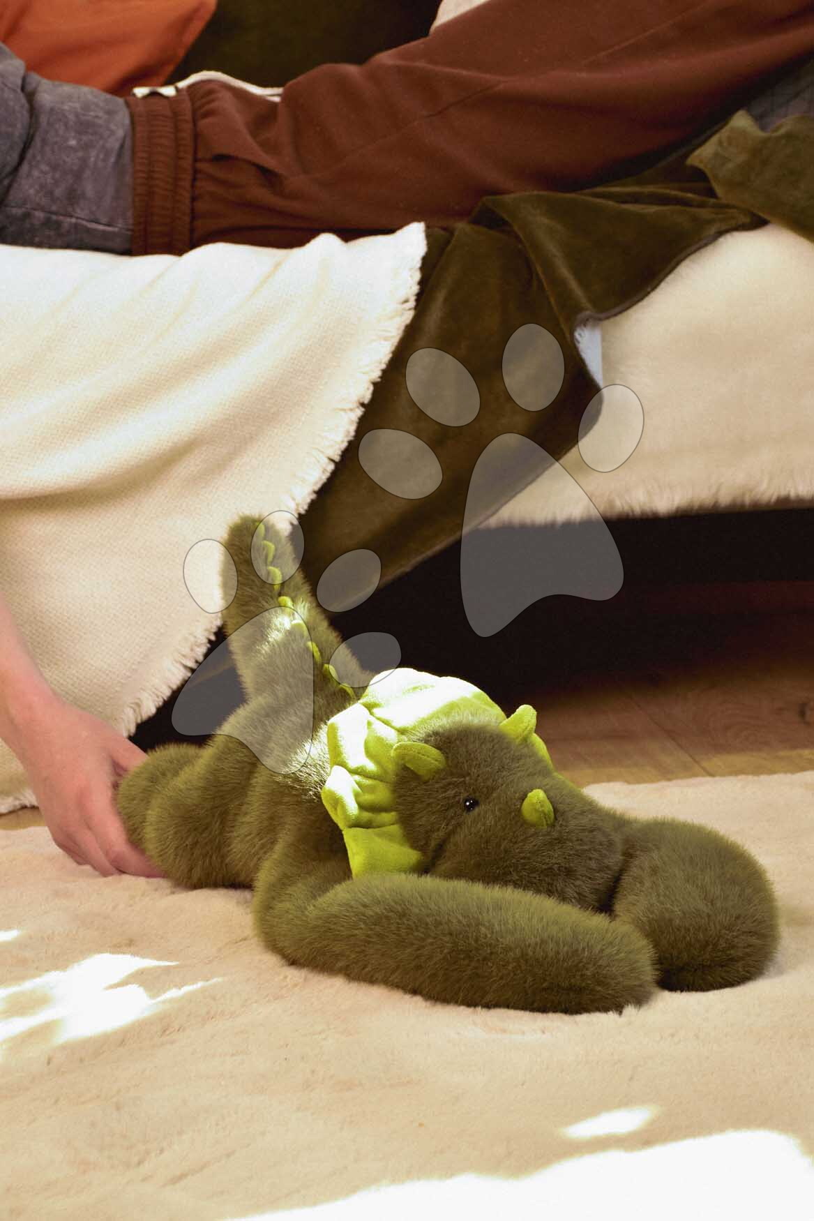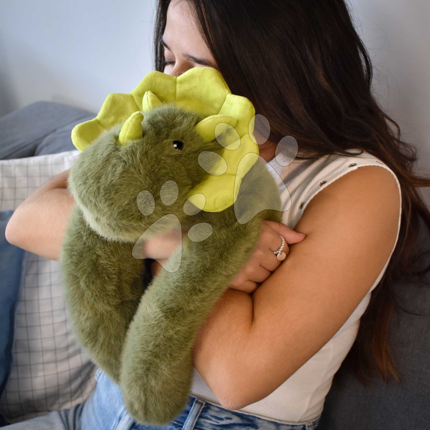 Detstvo je krásne, ale aj stresujúce obdobie, počas ktorého deťom nesmie chýbať plyšová hračka prinášajúca pocit istoty a pokoja. Plyšový dinosaurus na objímanie The Glue Pots Dino je rozkošné plyšové zvieratko ideálne na maznanie a odbúranie stresu, ktorý zažívajú už malé deti. Zelený dinosaurus má dlhé, zaťažené predné nohy, vďaka čomu vytvorí pocit skutočného objímania. Deti si ho môžu položiť na rameno, pritúliť sa k nemu a okamžite pocítia jeho upokojujúcu prítomnosť.